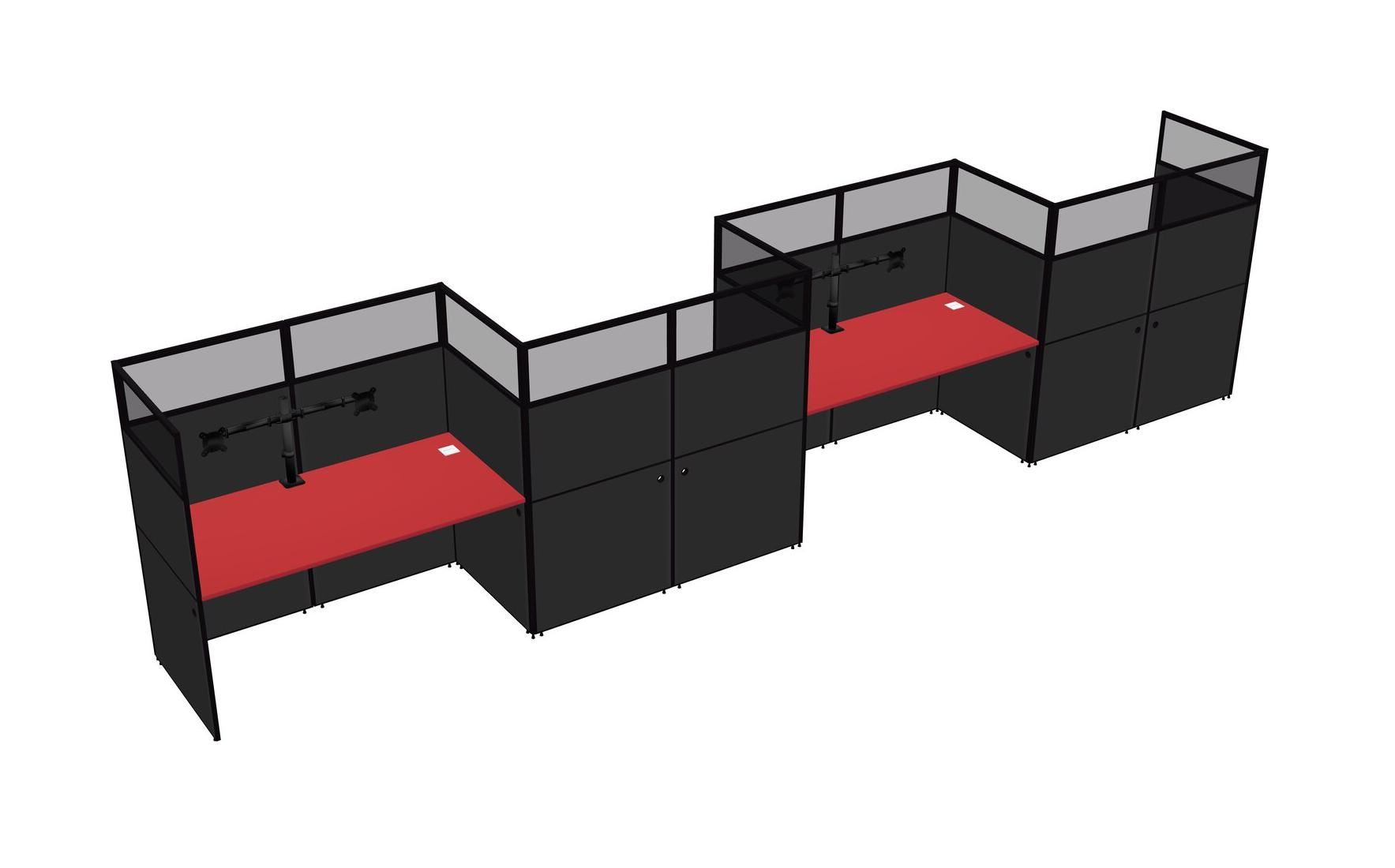 Prism Red Rectangular Cubicle Workstations For 4 - Zigzag Formation