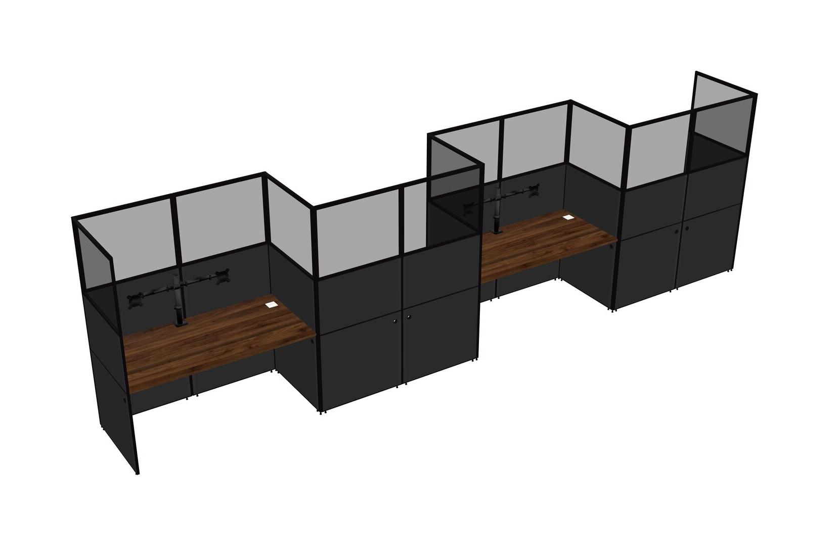 Columbia Walnut Rectangular Cubicle Workstations For 4 - Zigzag Formation