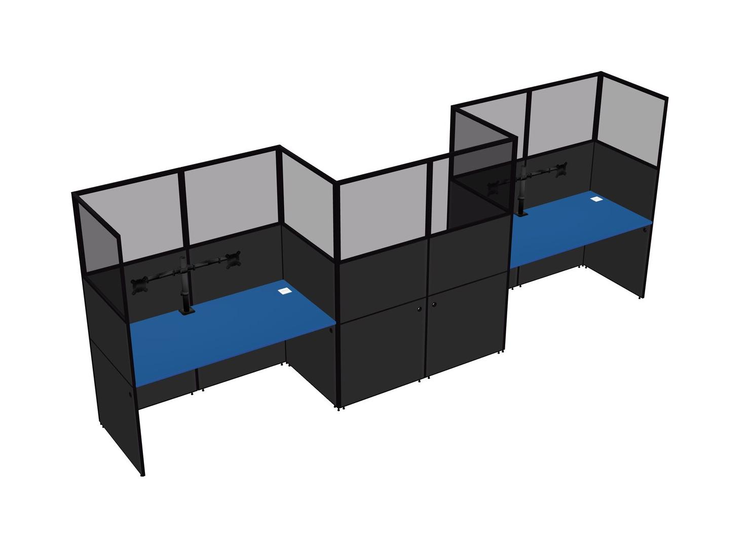 Prism Blue Rectangular Cubicle Workstations For 3 - Zigzag Formation