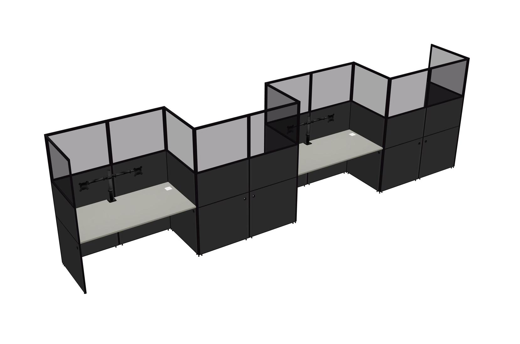 Grey Shadows Rectangular Cubicle Workstations For 4 - Zigzag Formation