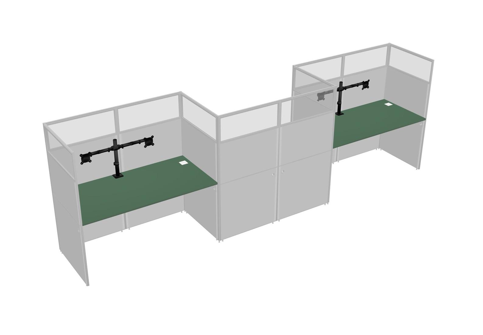 Green Rectangular Cubicle Workstations For 3 - Zigzag Formation