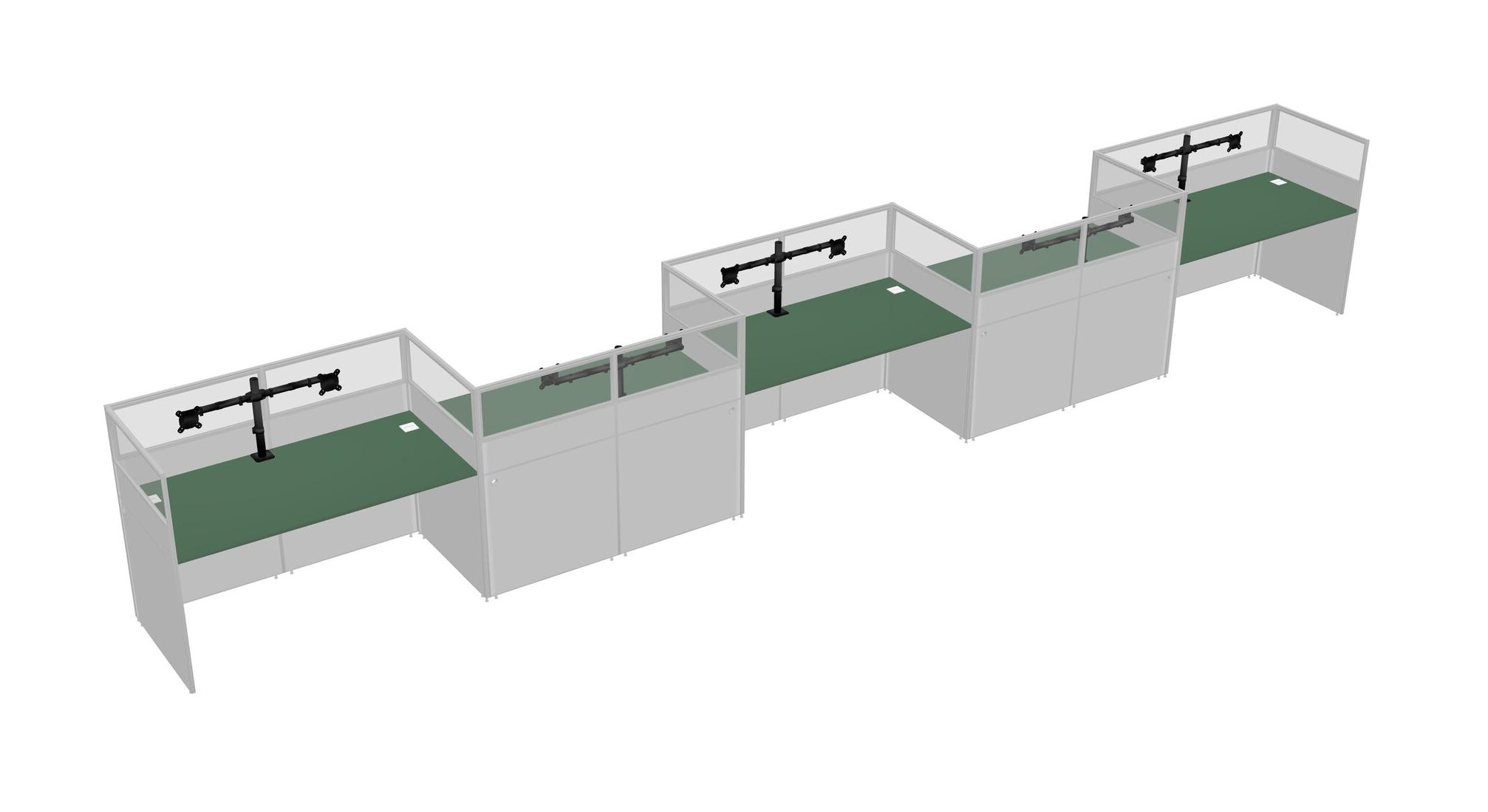 Green Rectangular Cubicle Workstations For 5 - Zigzag Formation