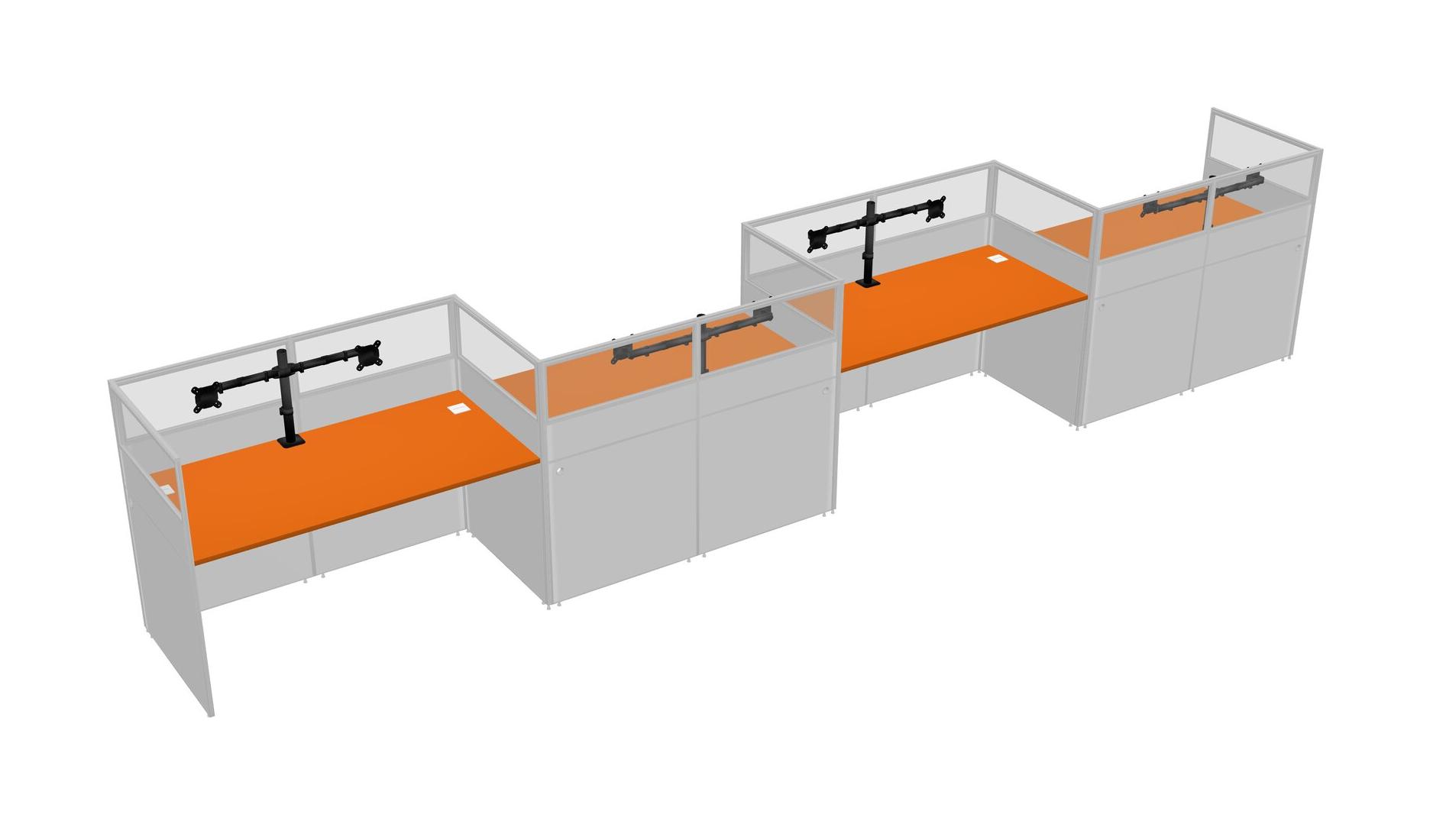Orange Rectangular Cubicle Workstations For 4 - Zigzag Formation
