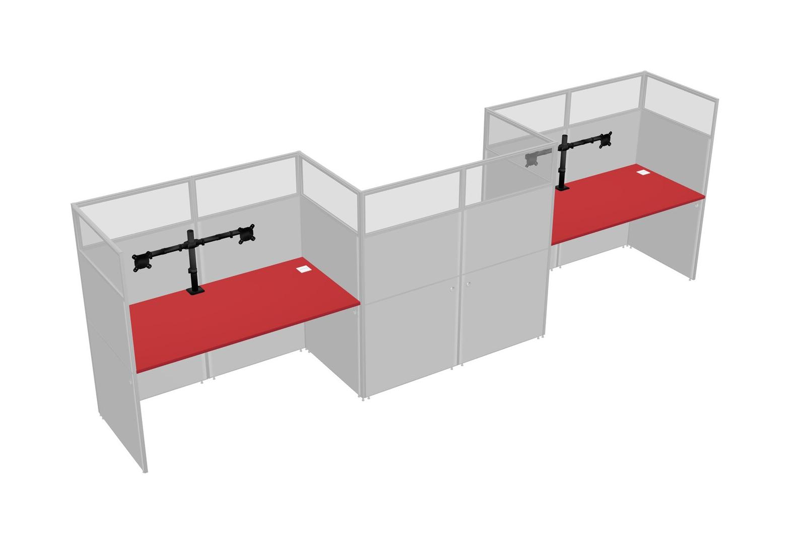 Prism Red Rectangular Cubicle Workstations For 3 - Zigzag Formation