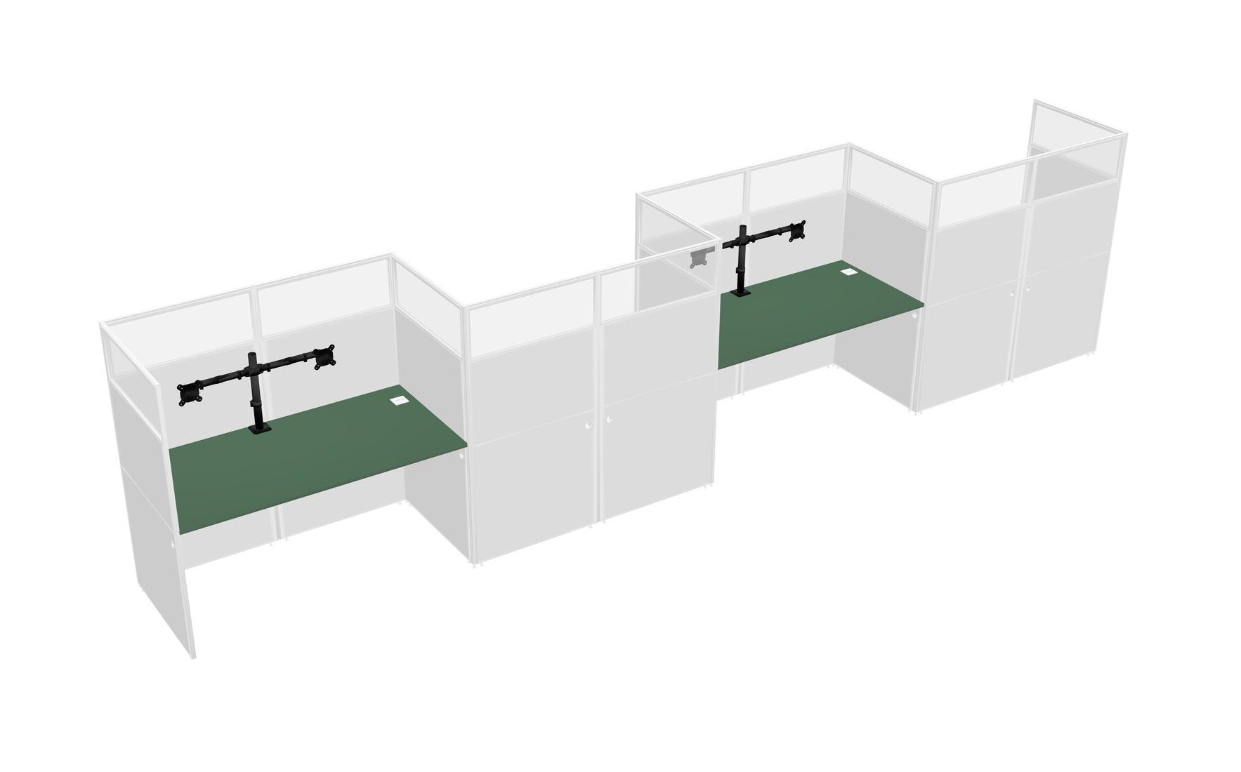 Green Rectangular Cubicle Workstations For 4 - Zigzag Formation