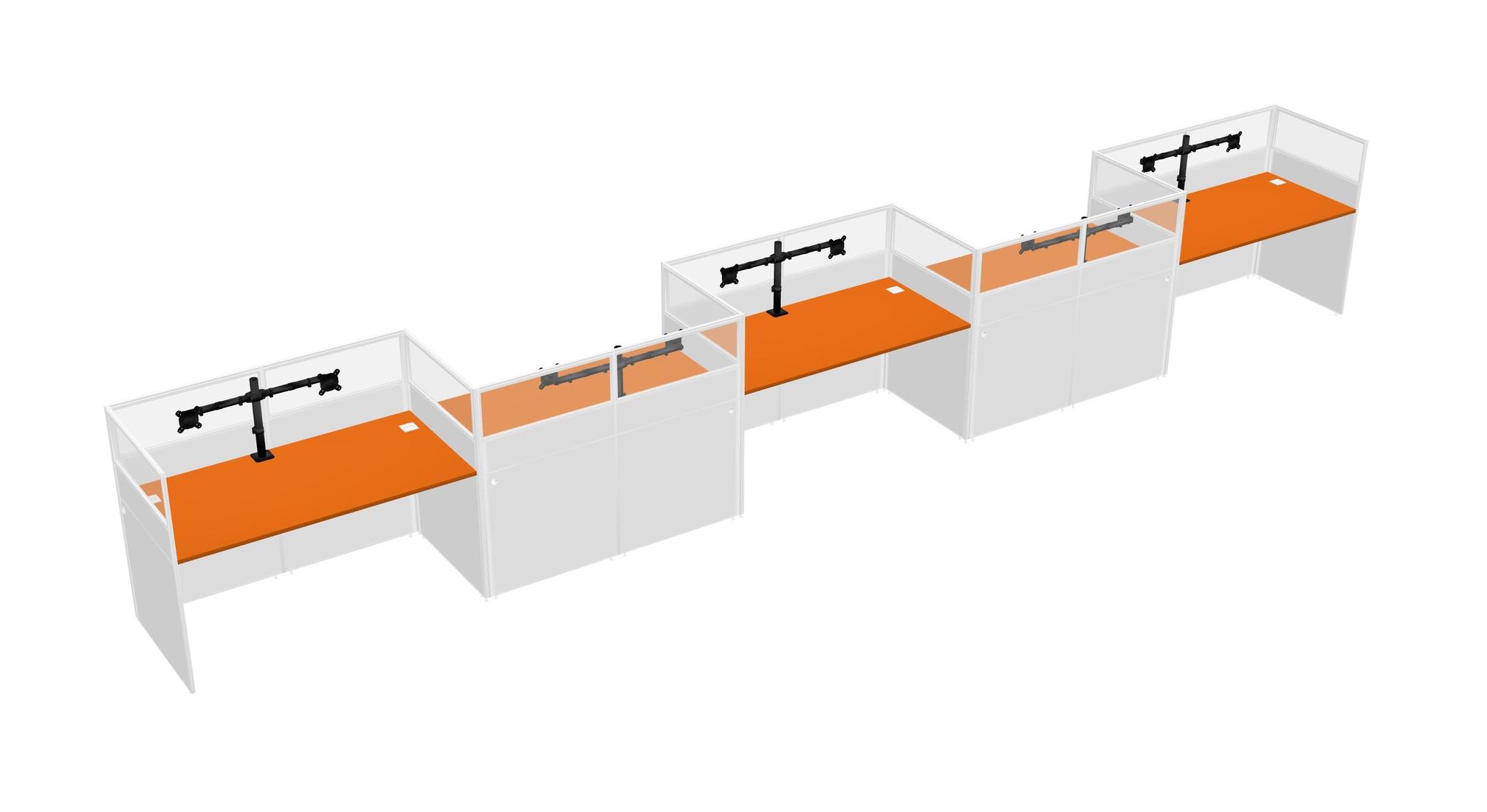 Orange Rectangular Cubicle Workstations For 5 - Zigzag Formation