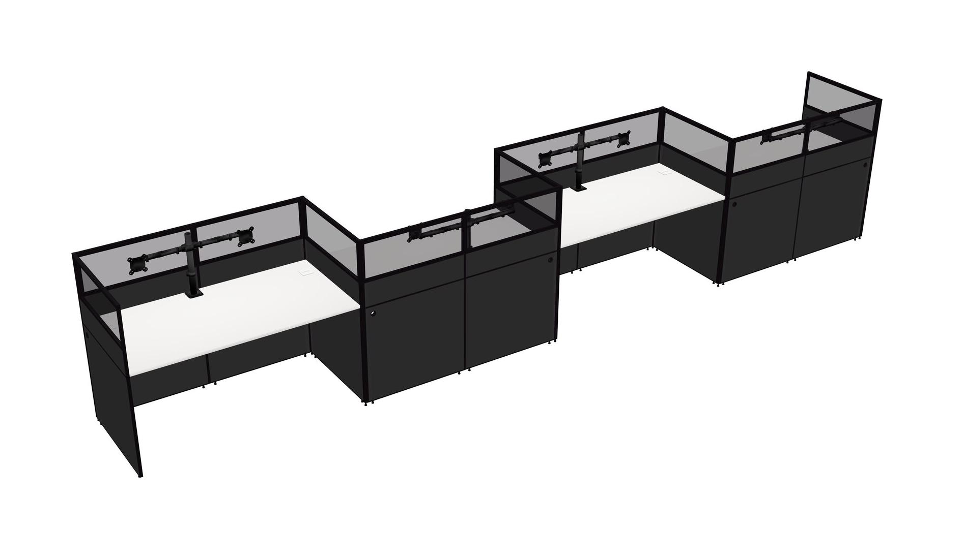 White Rectangular Cubicle Workstations For 4 - Zigzag Formation
