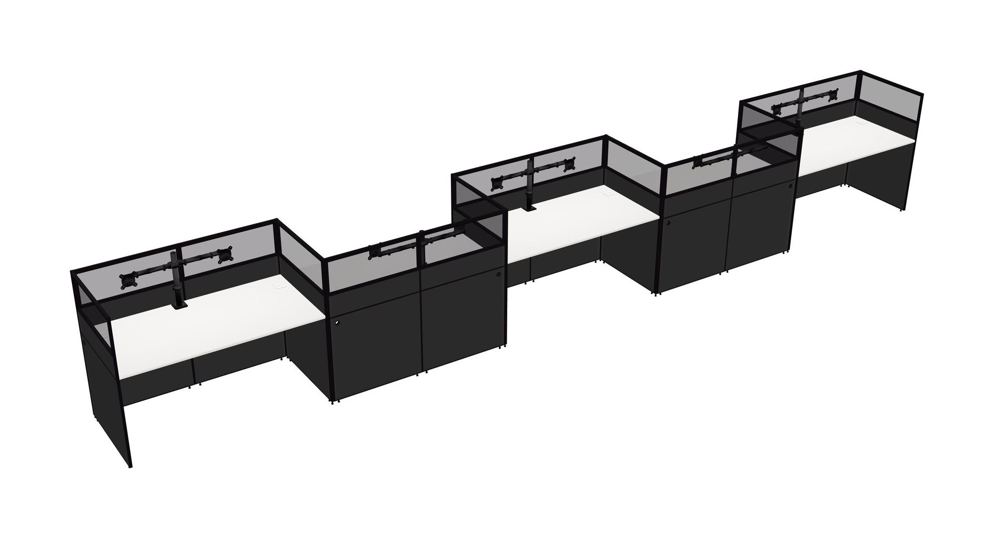White Rectangular Cubicle Workstations For 5 - Zigzag Formation