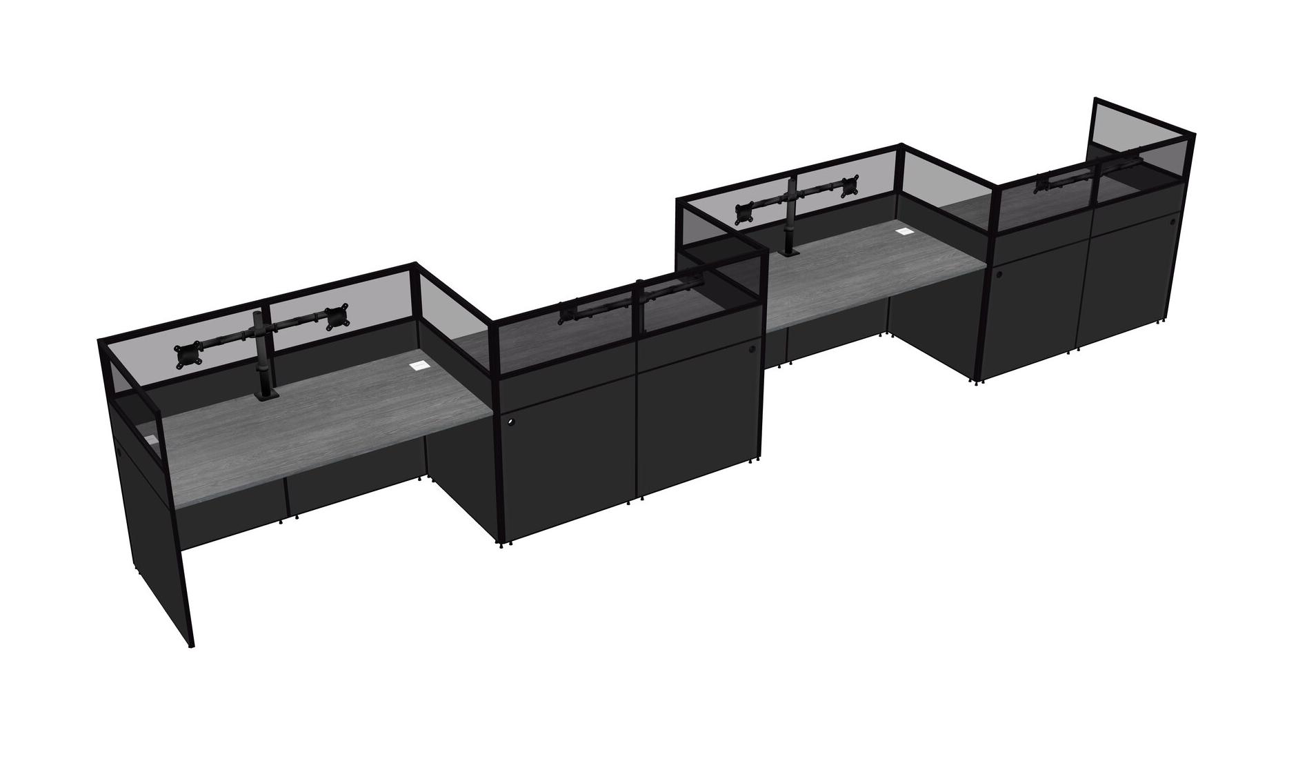 Grey Rectangular Cubicle Workstations For 4 - Zigzag Formation