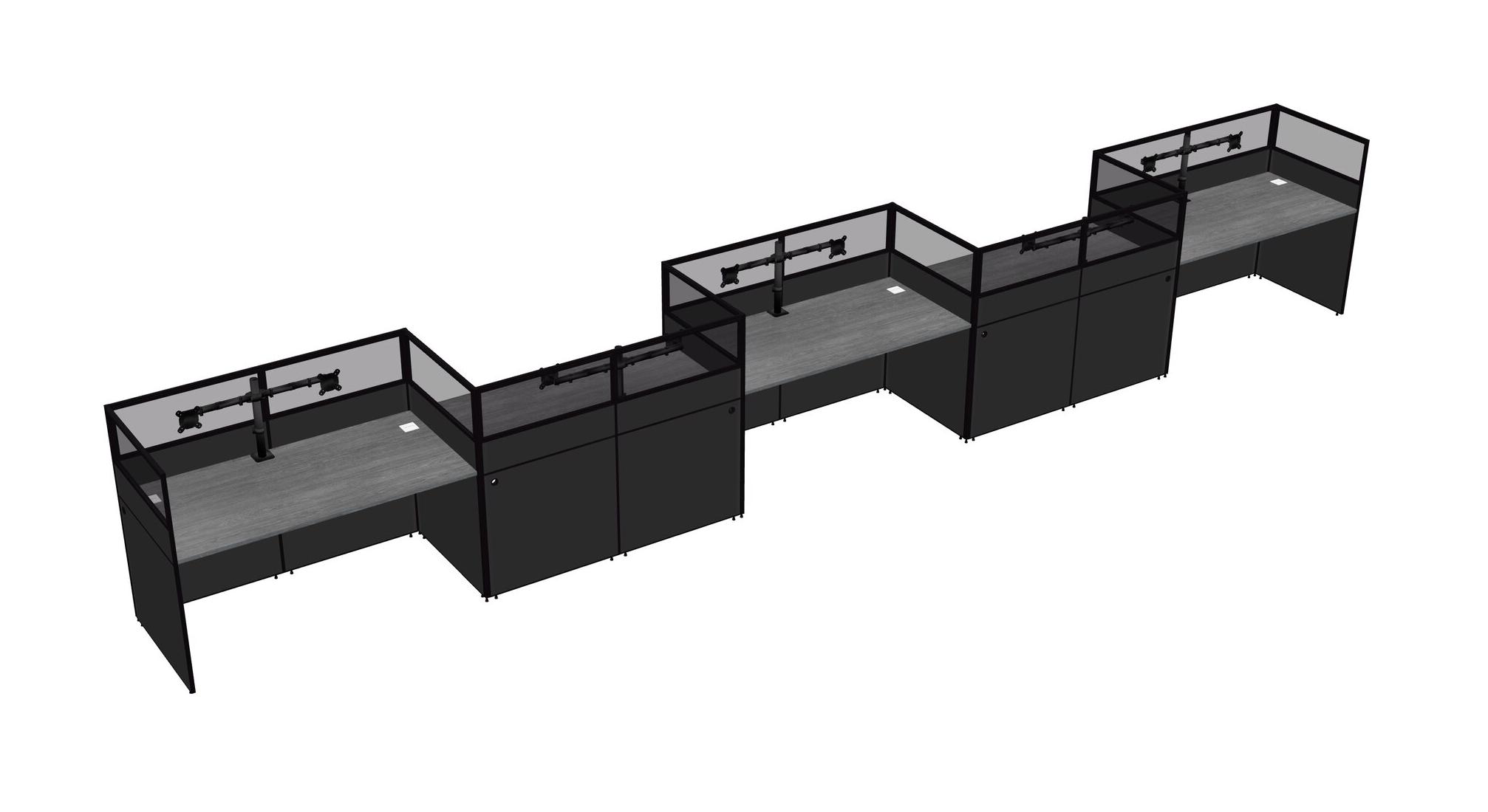 Grey Rectangular Cubicle Workstations For 5 - Zigzag Formation