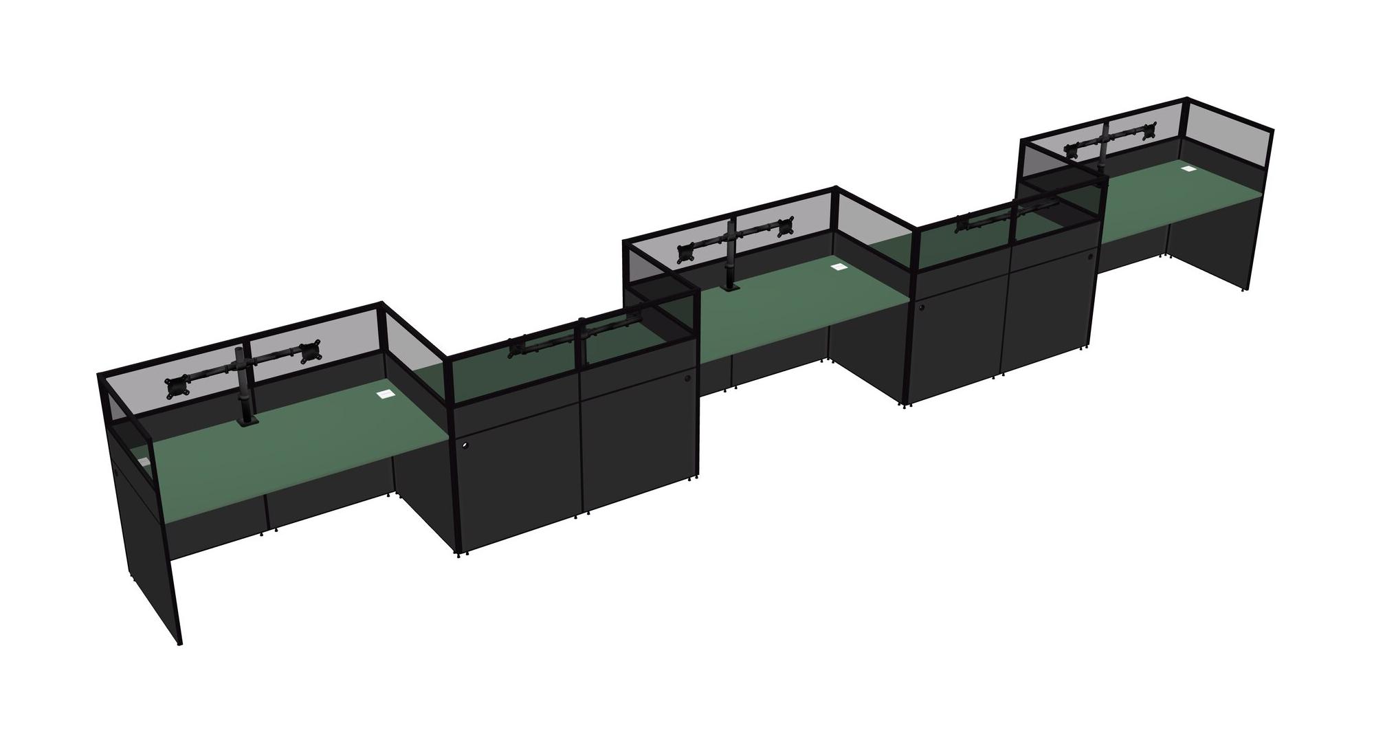Green Rectangular Cubicle Workstations For 5 - Zigzag Formation