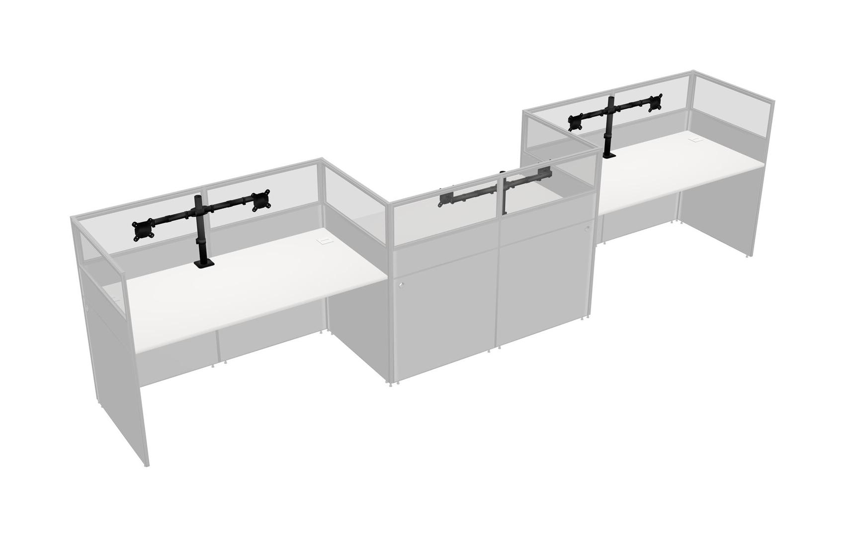 White Rectangular Cubicle Workstations For 3 - Zigzag Formation