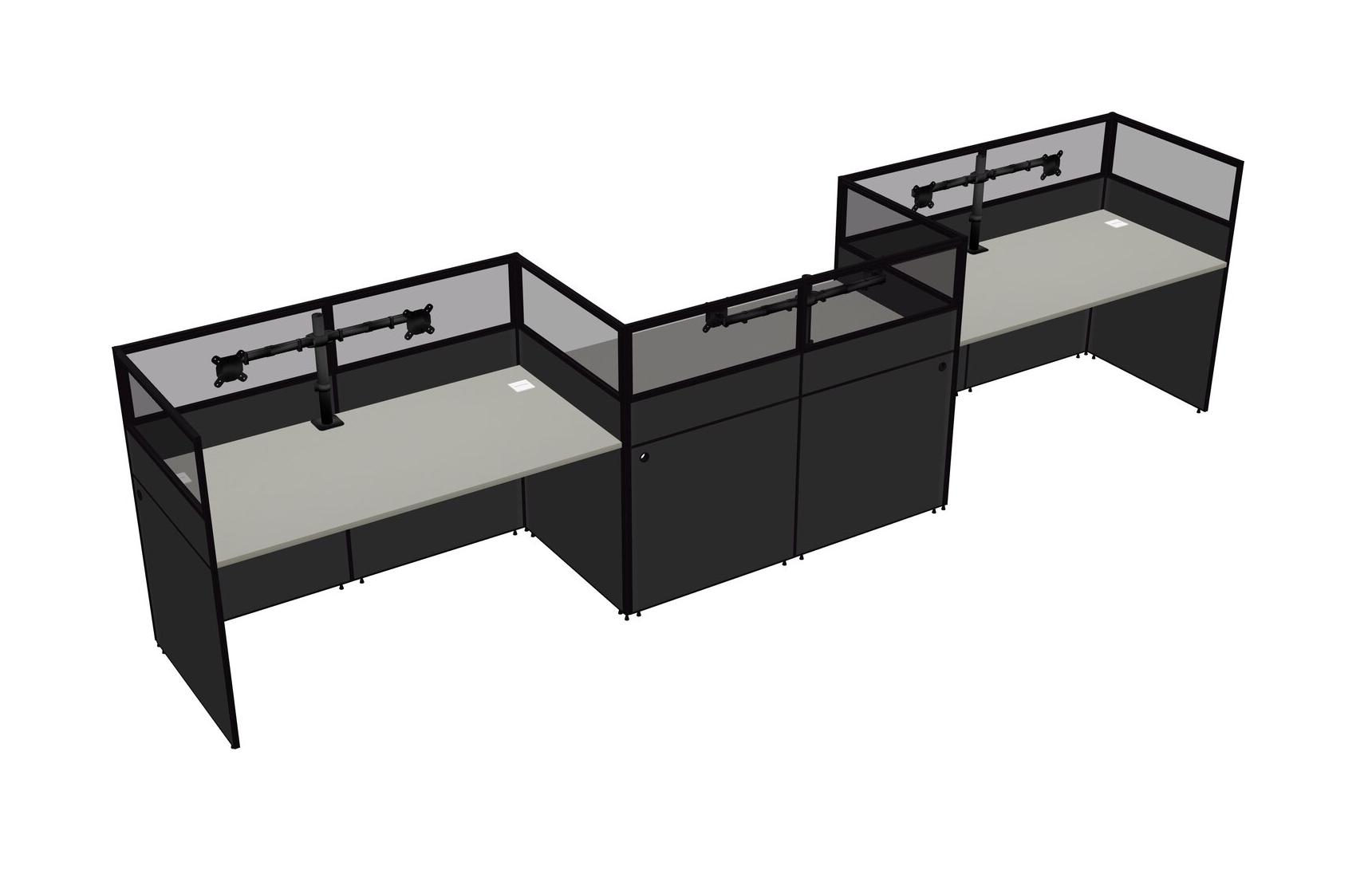 Grey Shadows Rectangular Cubicle Workstations For 3 - Zigzag Formation