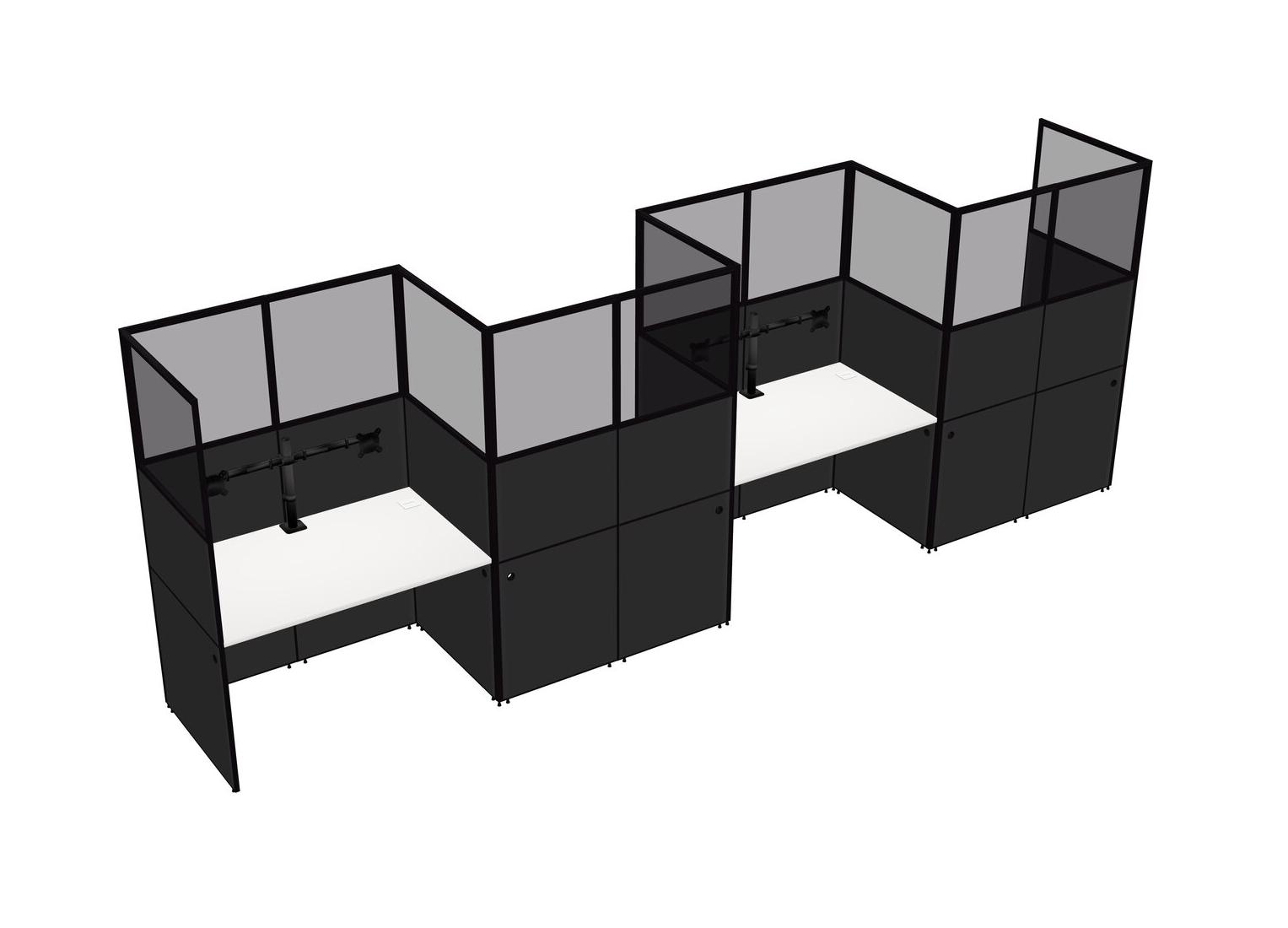 White Rectangular Cubicle Workstations For 4 - Zigzag Formation