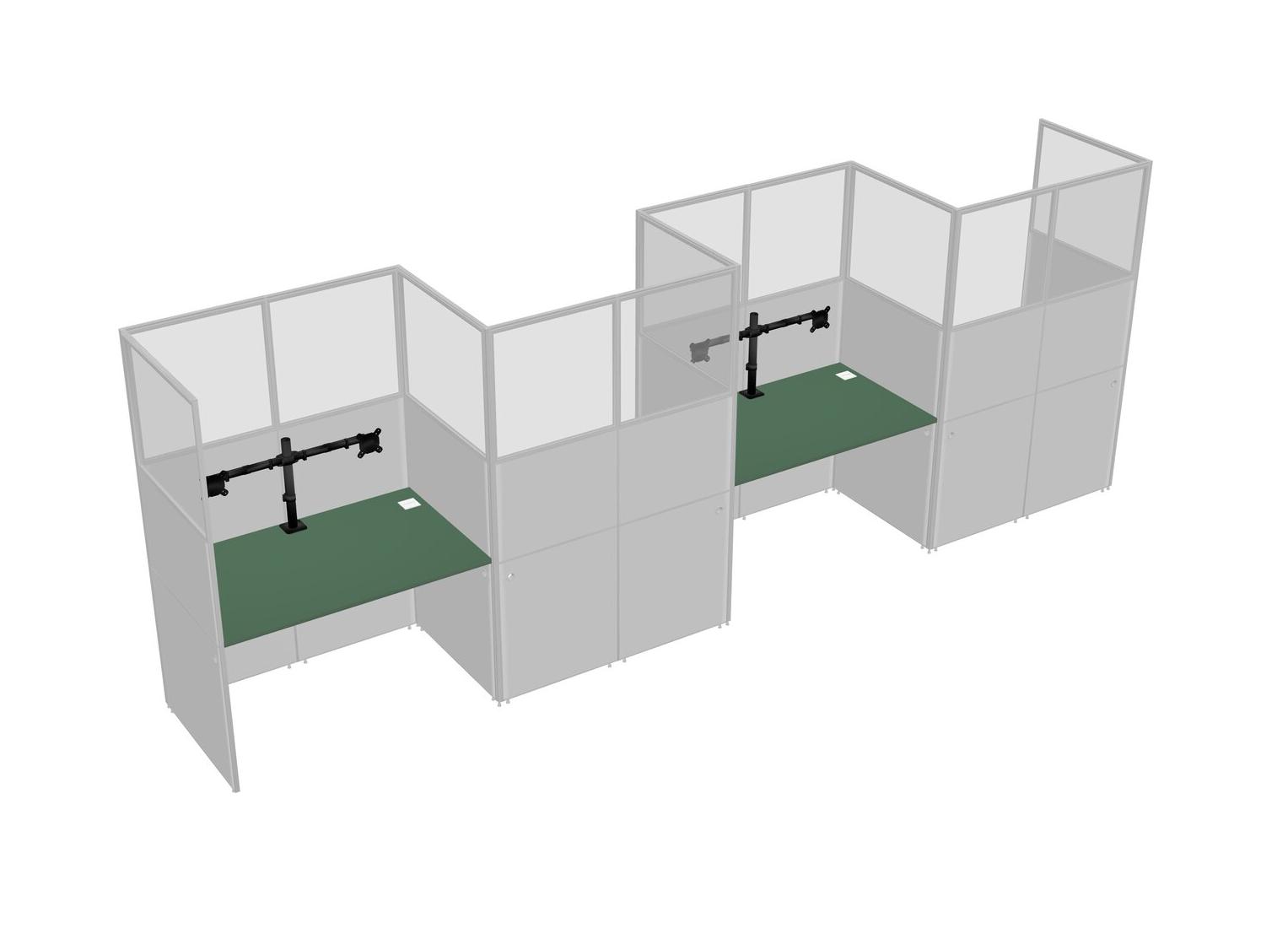 Green Rectangular Cubicle Workstations For 4 - Zigzag Formation