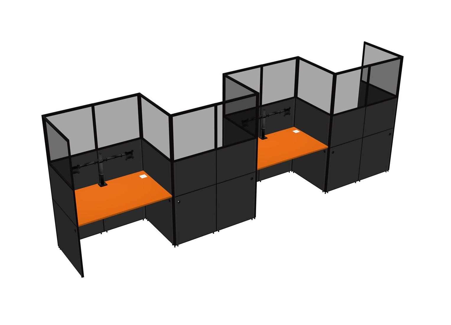 Orange Rectangular Cubicle Workstations For 4 - Zigzag Formation