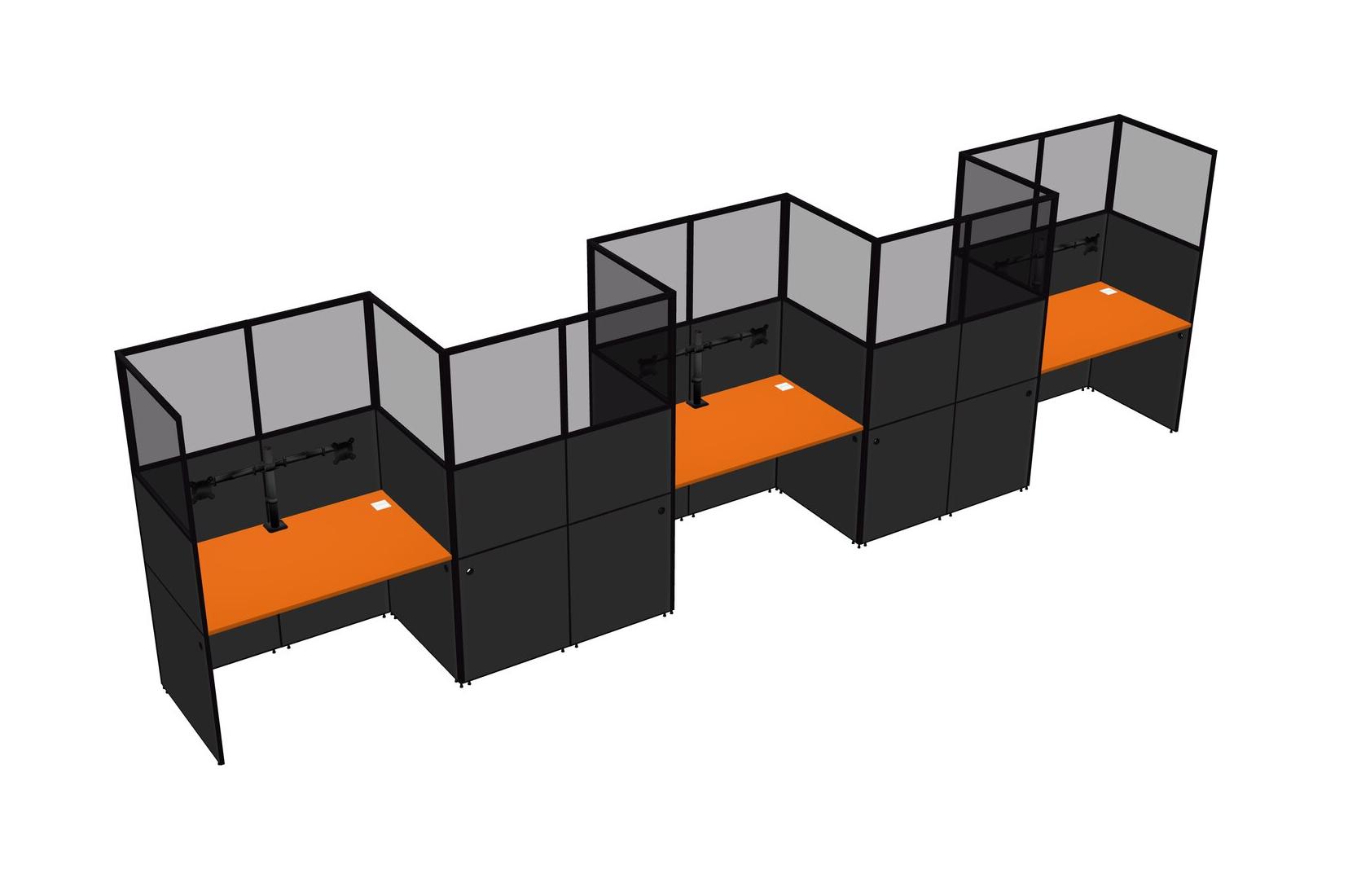 Orange Rectangular Cubicle Workstations For 5 - Zigzag Formation