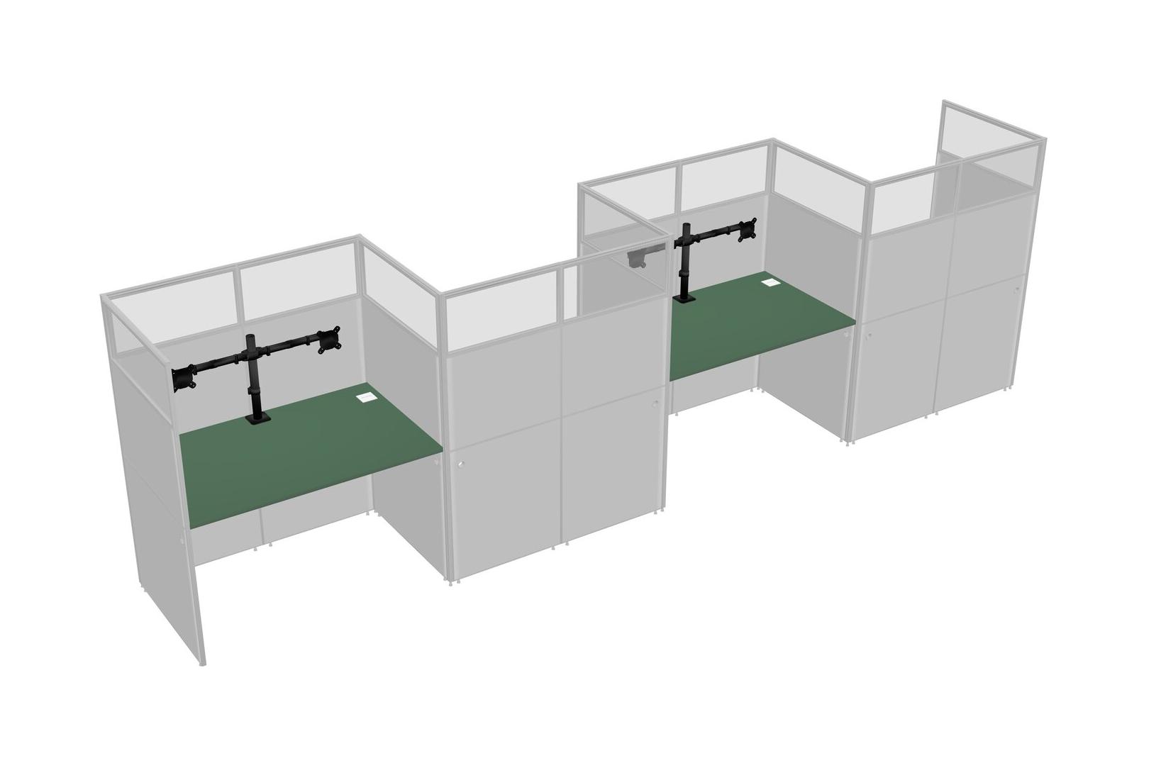 Green Rectangular Cubicle Workstations For 4 - Zigzag Formation