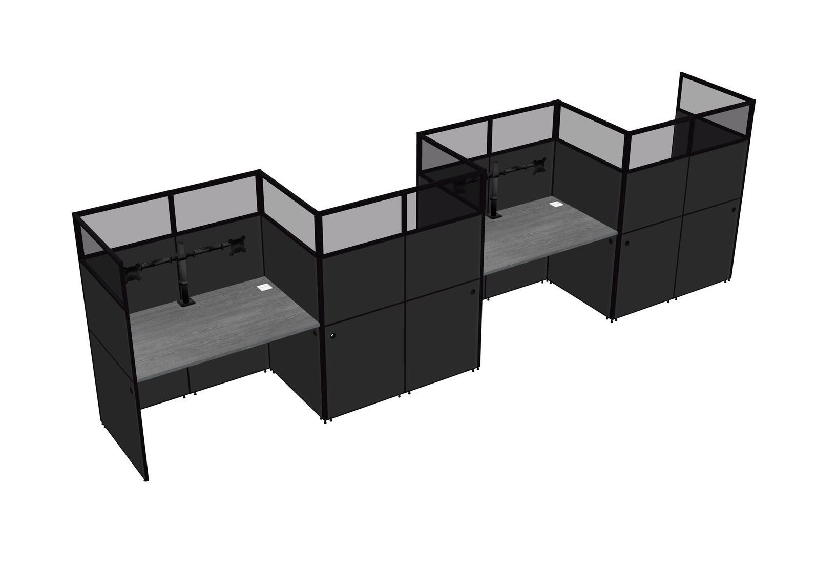 Grey Rectangular Cubicle Workstations For 4 - Zigzag Formation