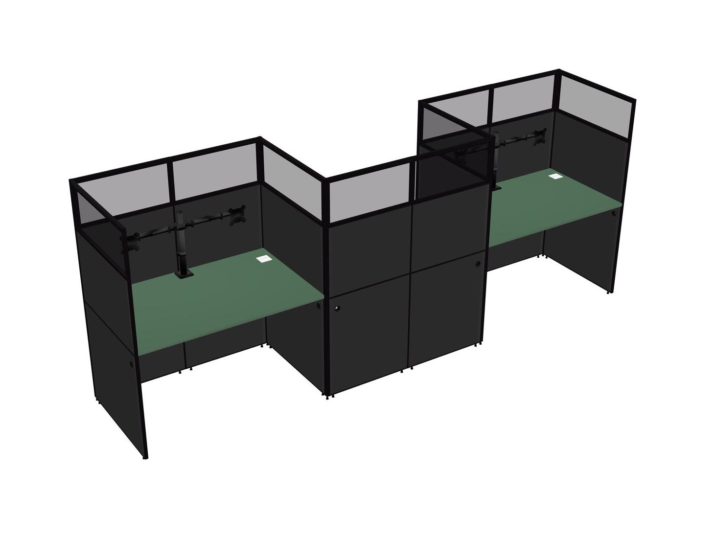 Green Rectangular Cubicle Workstations For 3 - Zigzag Formation