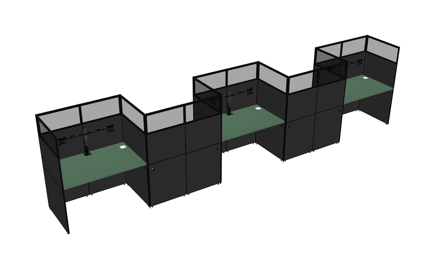 Green Rectangular Cubicle Workstations For 5 - Zigzag Formation