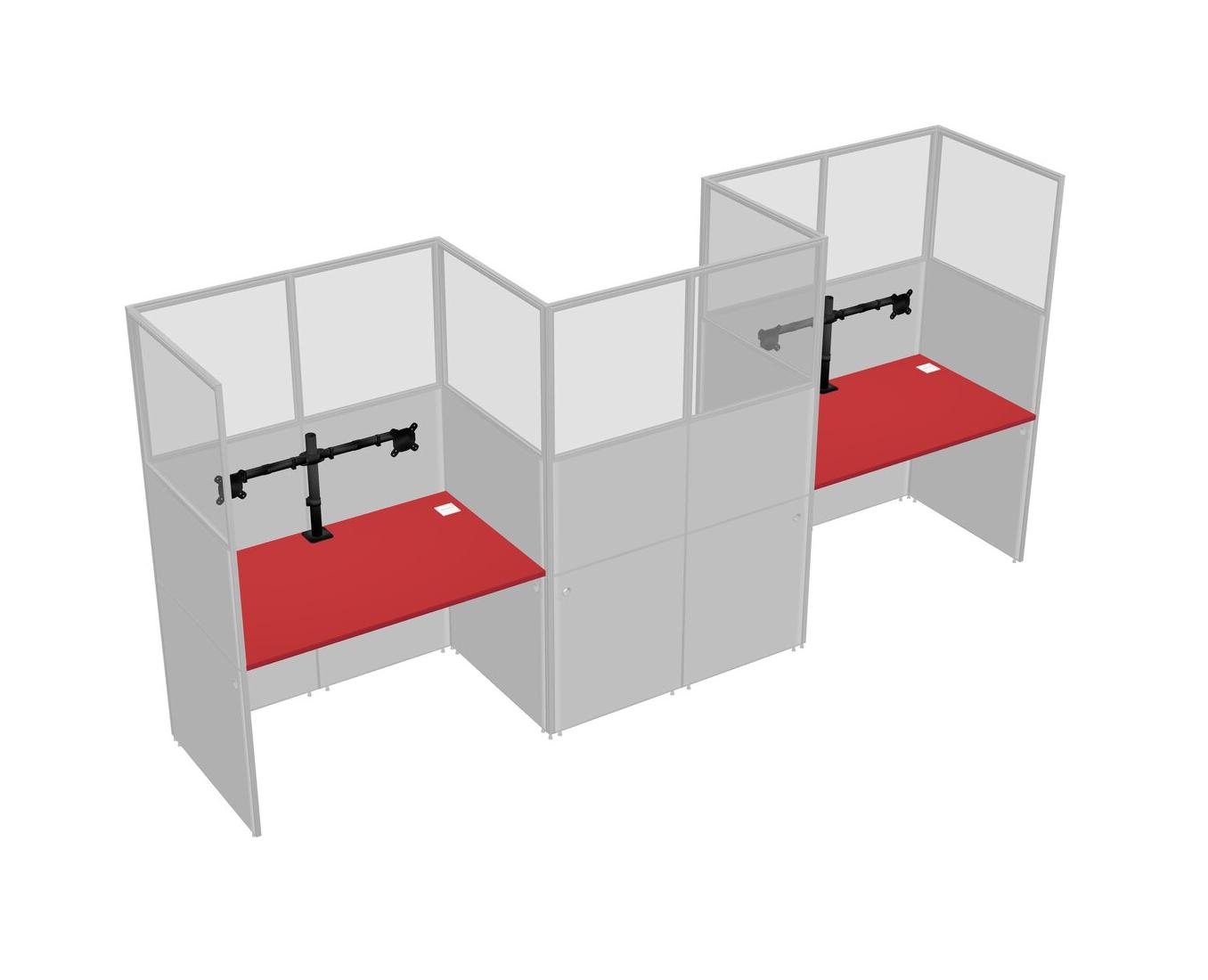 Prism Red Rectangular Cubicle Workstations For 3 - Zigzag Formation