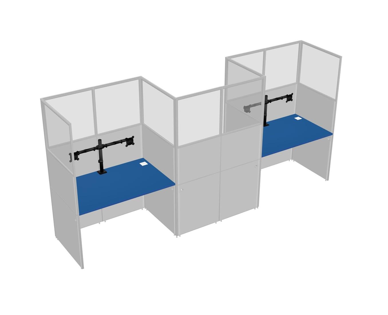 Prism Blue Rectangular Cubicle Workstations For 3 - Zigzag Formation