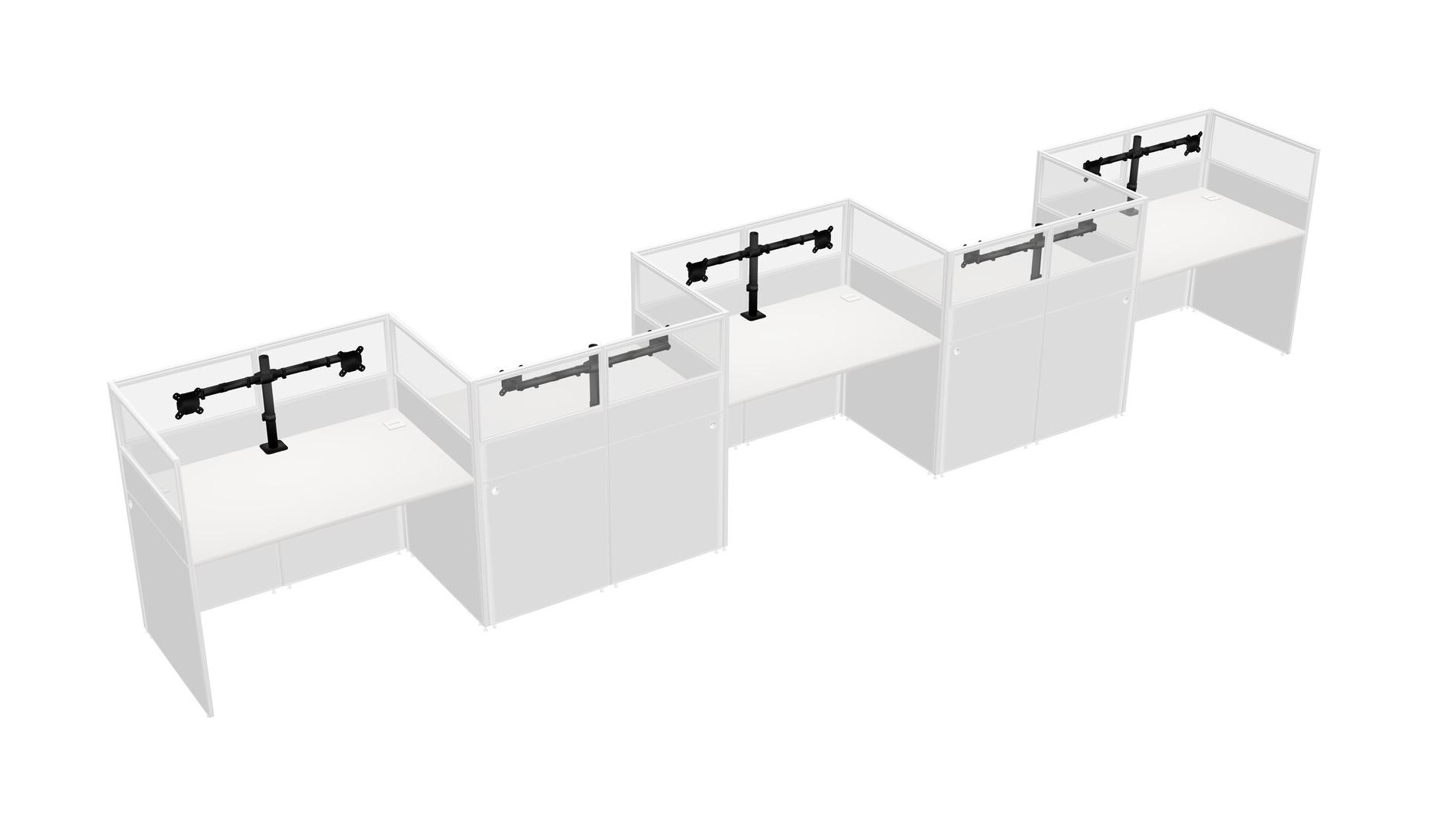 White Rectangular Cubicle Workstations For 5 - Zigzag Formation