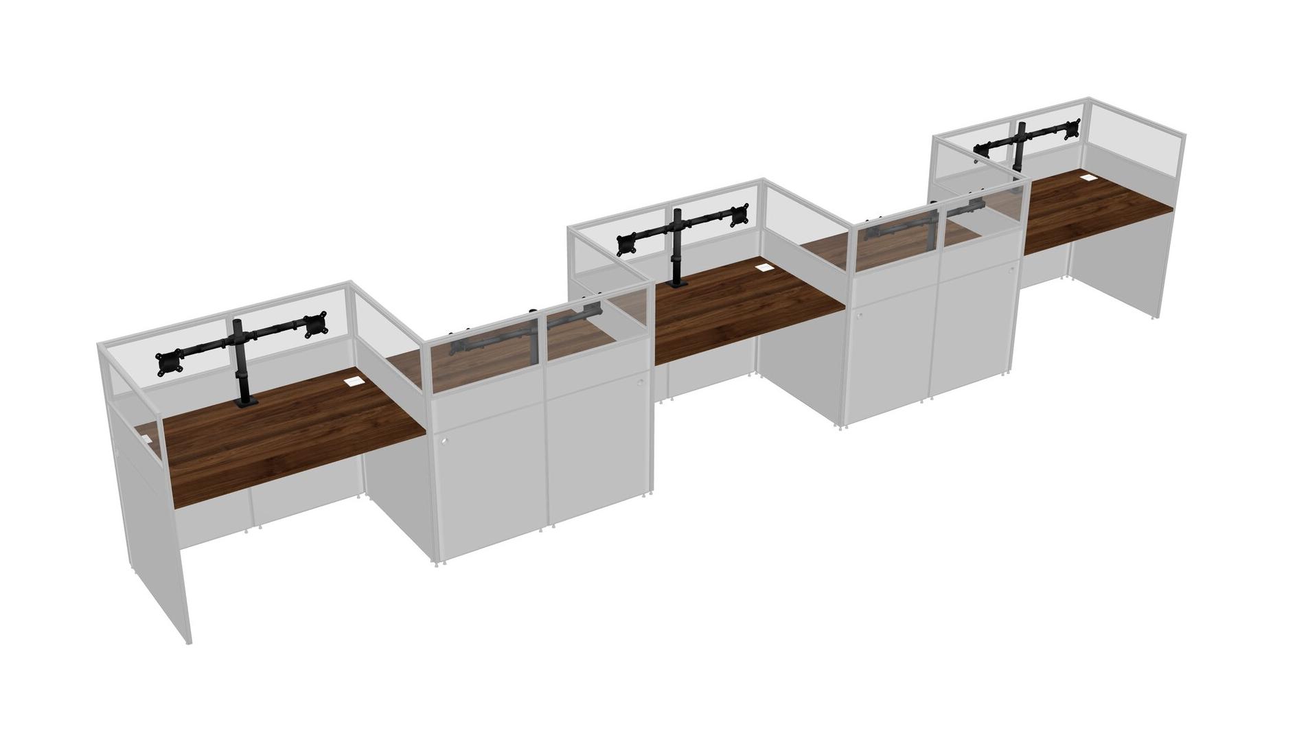 Columbia Walnut Rectangular Cubicle Workstations For 5 - Zigzag Formation