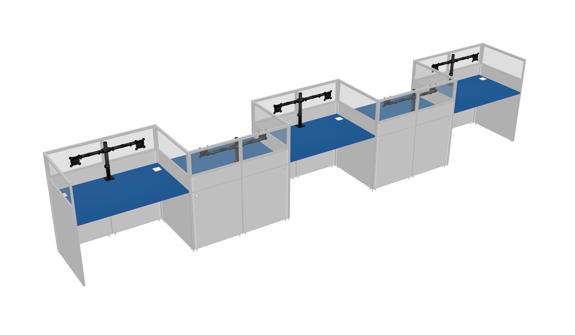 Prism Blue Rectangular Cubicle Workstations For 5 - Zigzag Formation