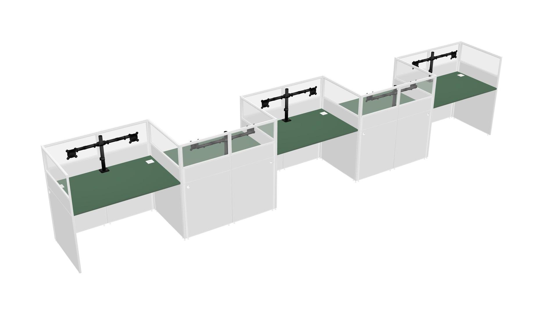 Green Rectangular Cubicle Workstations For 5 - Zigzag Formation