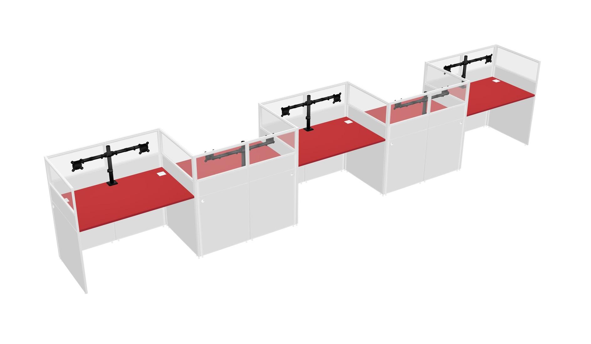 Prism Red Rectangular Cubicle Workstations For 5 - Zigzag Formation