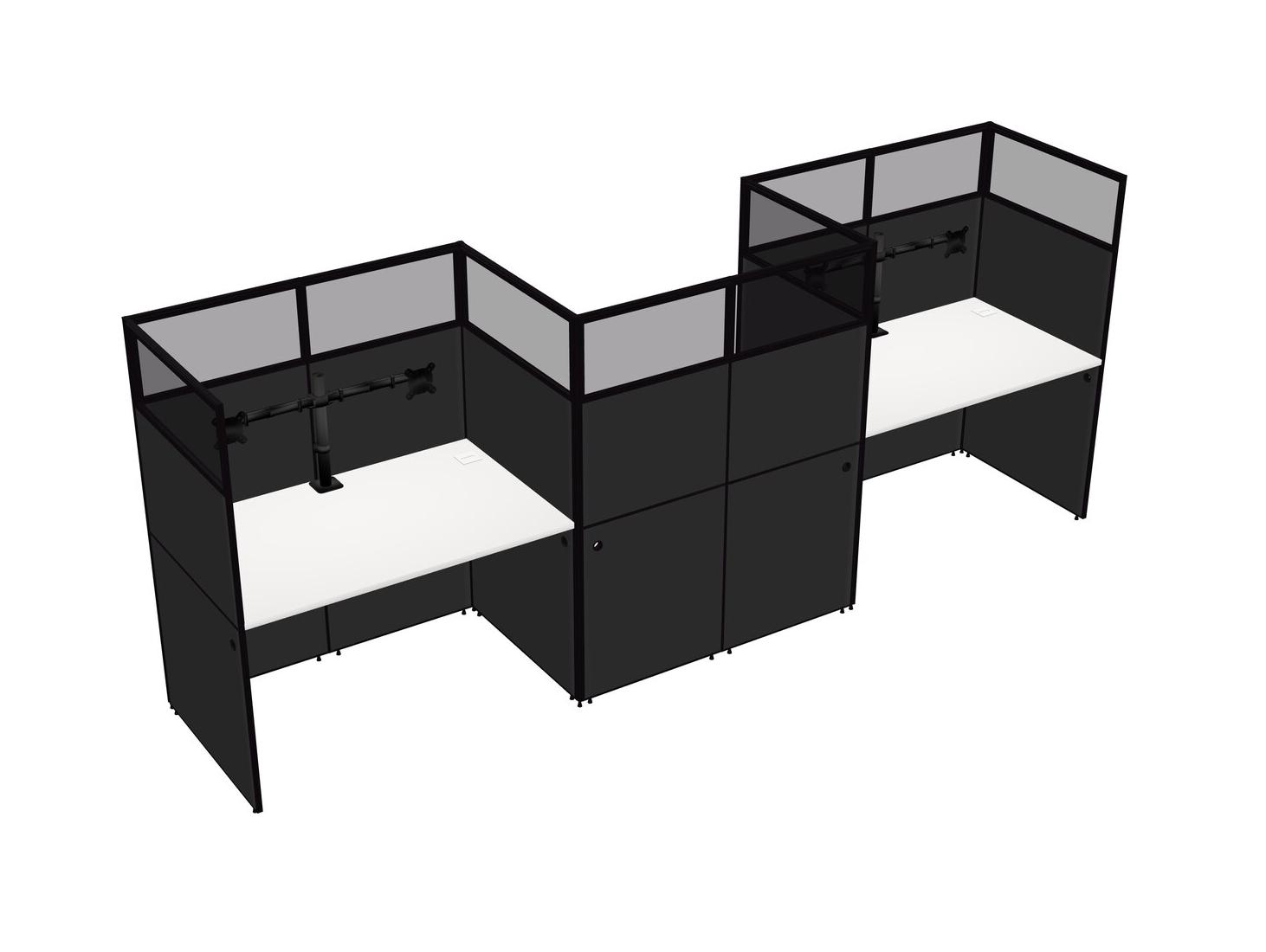 White Rectangular Cubicle Workstations For 3 - Zigzag Formation