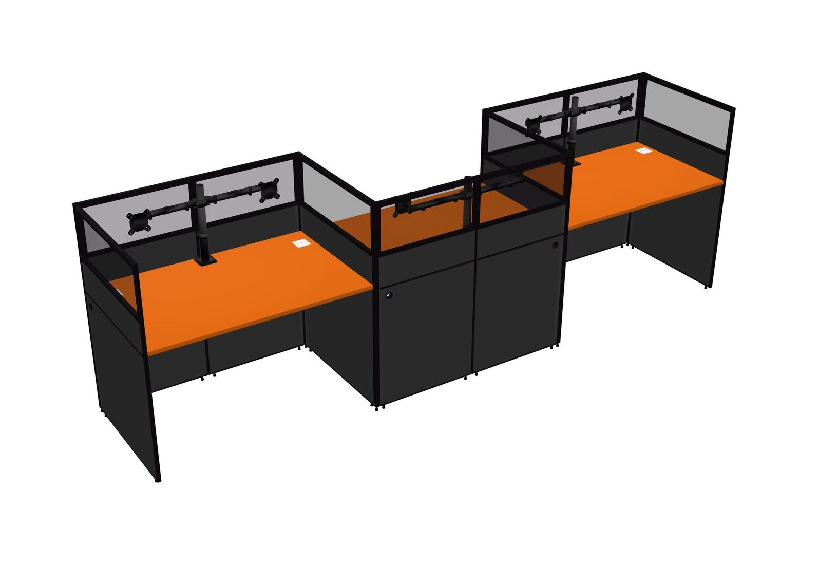 Orange Rectangular Cubicle Workstations For 3 - Zigzag Formation