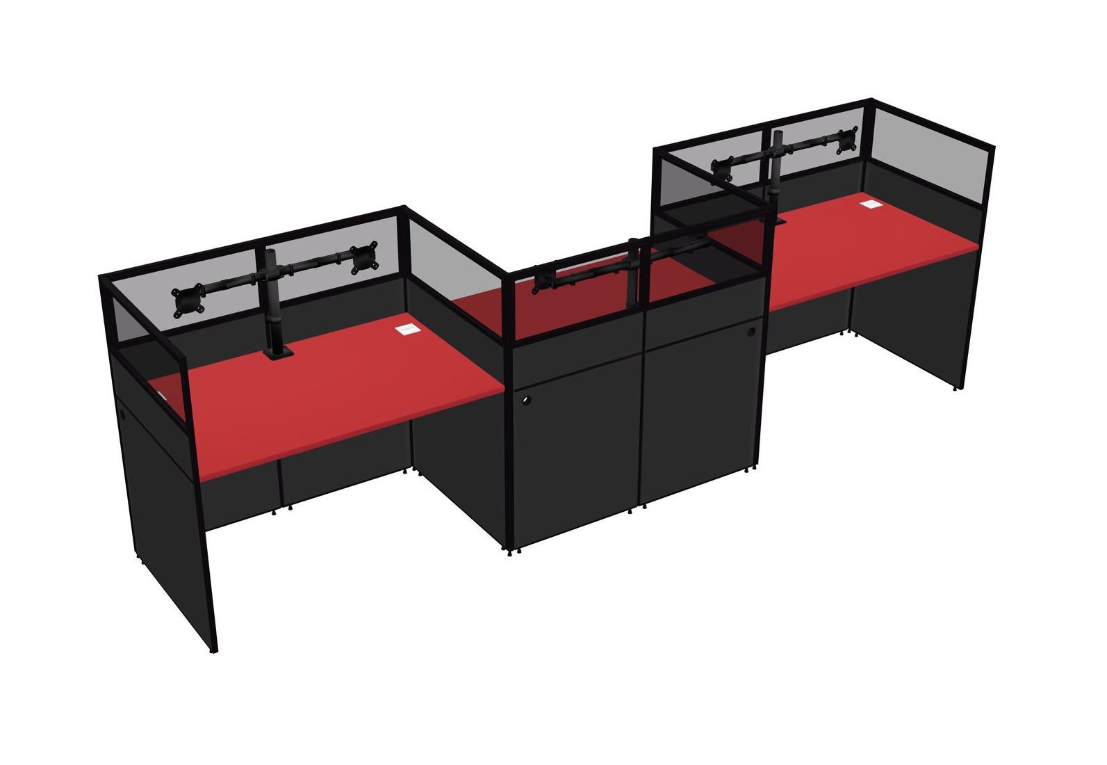 Prism Red Rectangular Cubicle Workstations For 3 - Zigzag Formation