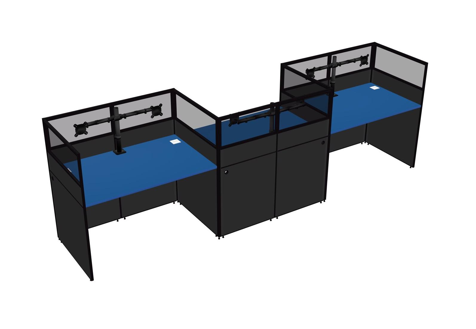 Prism Blue Rectangular Cubicle Workstations For 3 - Zigzag Formation