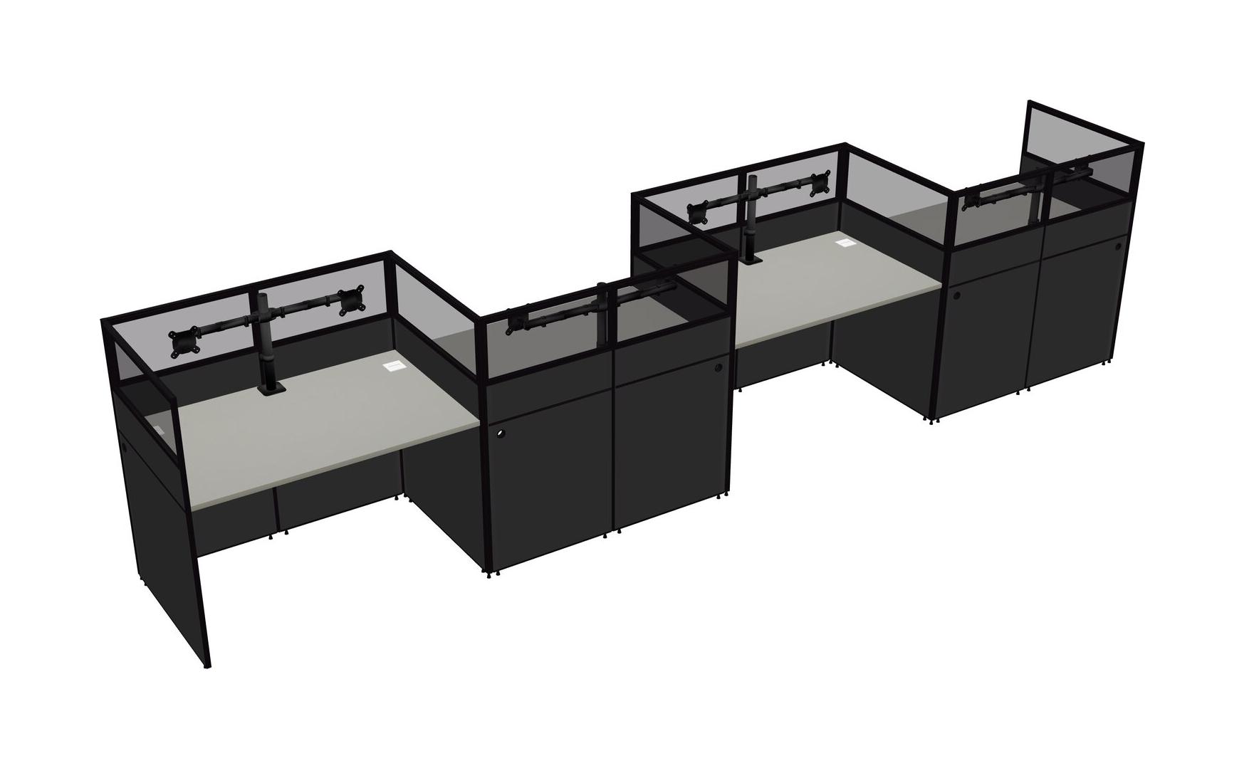 Grey Shadows Rectangular Cubicle Workstations For 4 - Zigzag Formation
