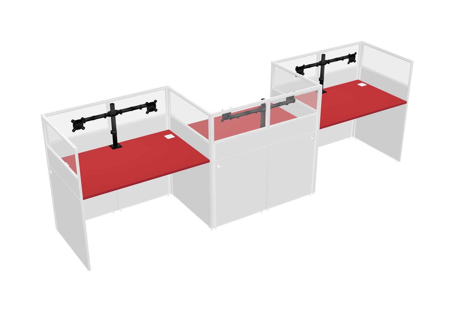 Prism Red Rectangular Cubicle Workstations For 3 - Zigzag Formation
