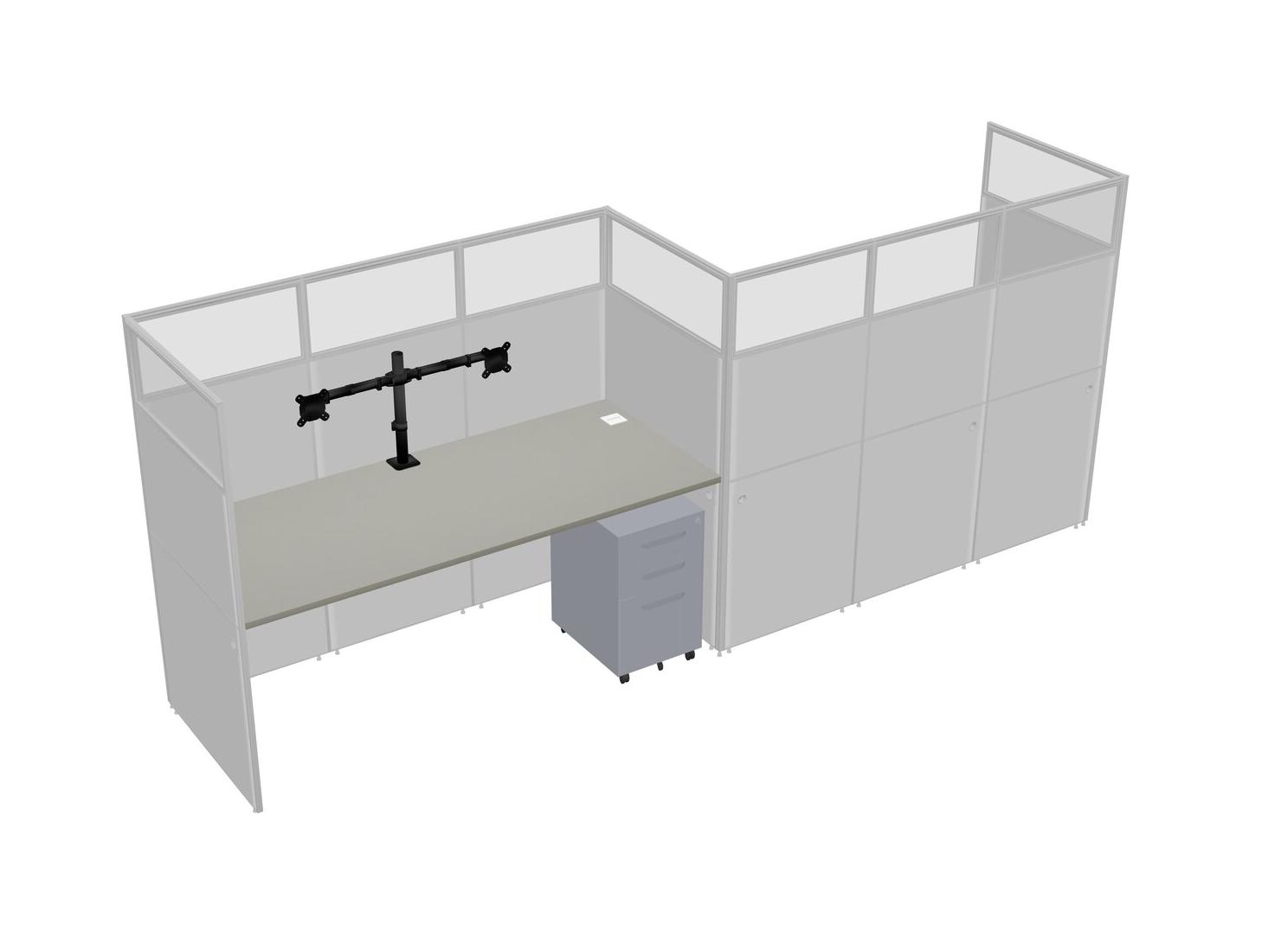 Grey Shadows Rectangular Cubicle Workstations For 2 - Zigzag Formation + Grey Metal Mobile Drawers