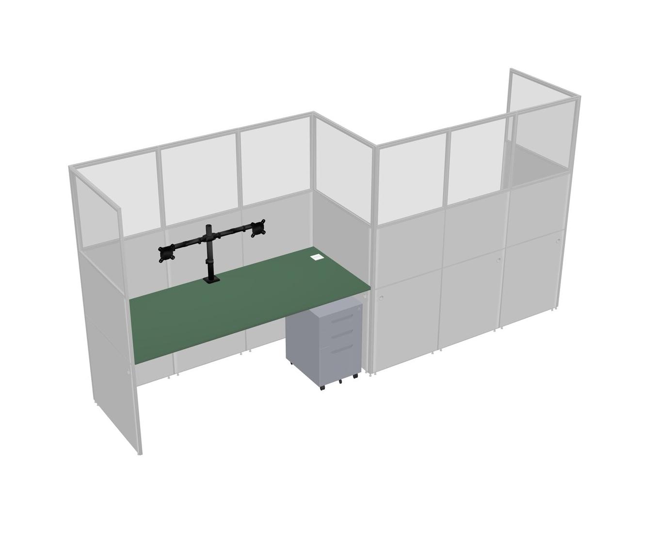 Green Rectangular Cubicle Workstations For 2 - Zigzag Formation + Grey Metal Mobile Drawers