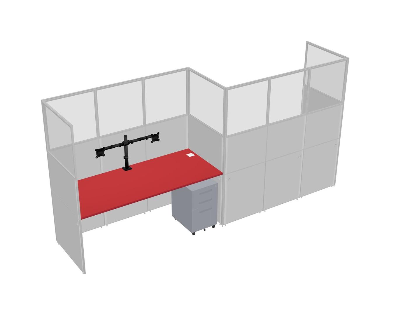 Prism Red Rectangular Cubicle Workstations For 2 - Zigzag Formation + Grey Metal Mobile Drawers