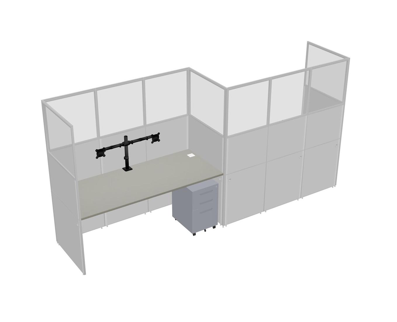 Grey Shadows Rectangular Cubicle Workstations For 2 - Zigzag Formation + Grey Metal Mobile Drawers