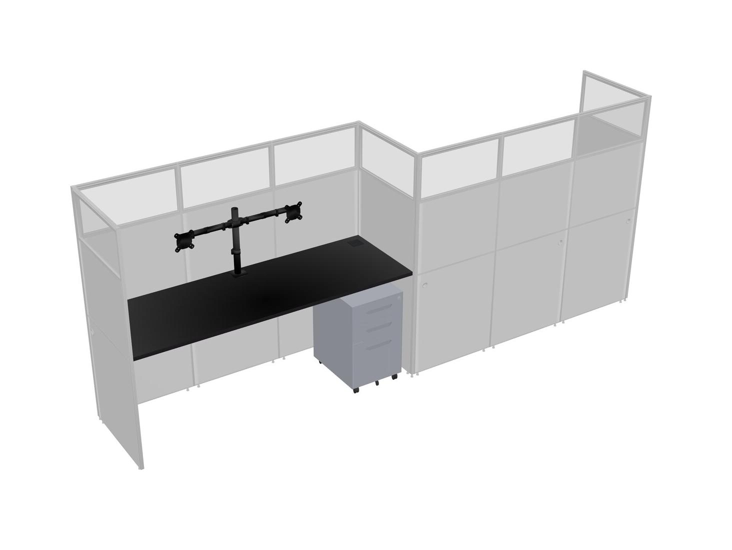 Black Rectangular Cubicle Workstations For 2 - Zigzag Formation + Grey Metal Mobile Drawers
