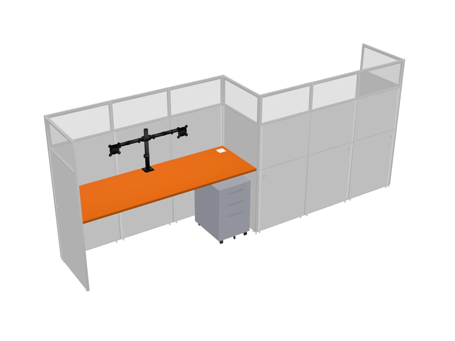 Orange Rectangular Cubicle Workstations For 2 - Zigzag Formation + Grey Metal Mobile Drawers