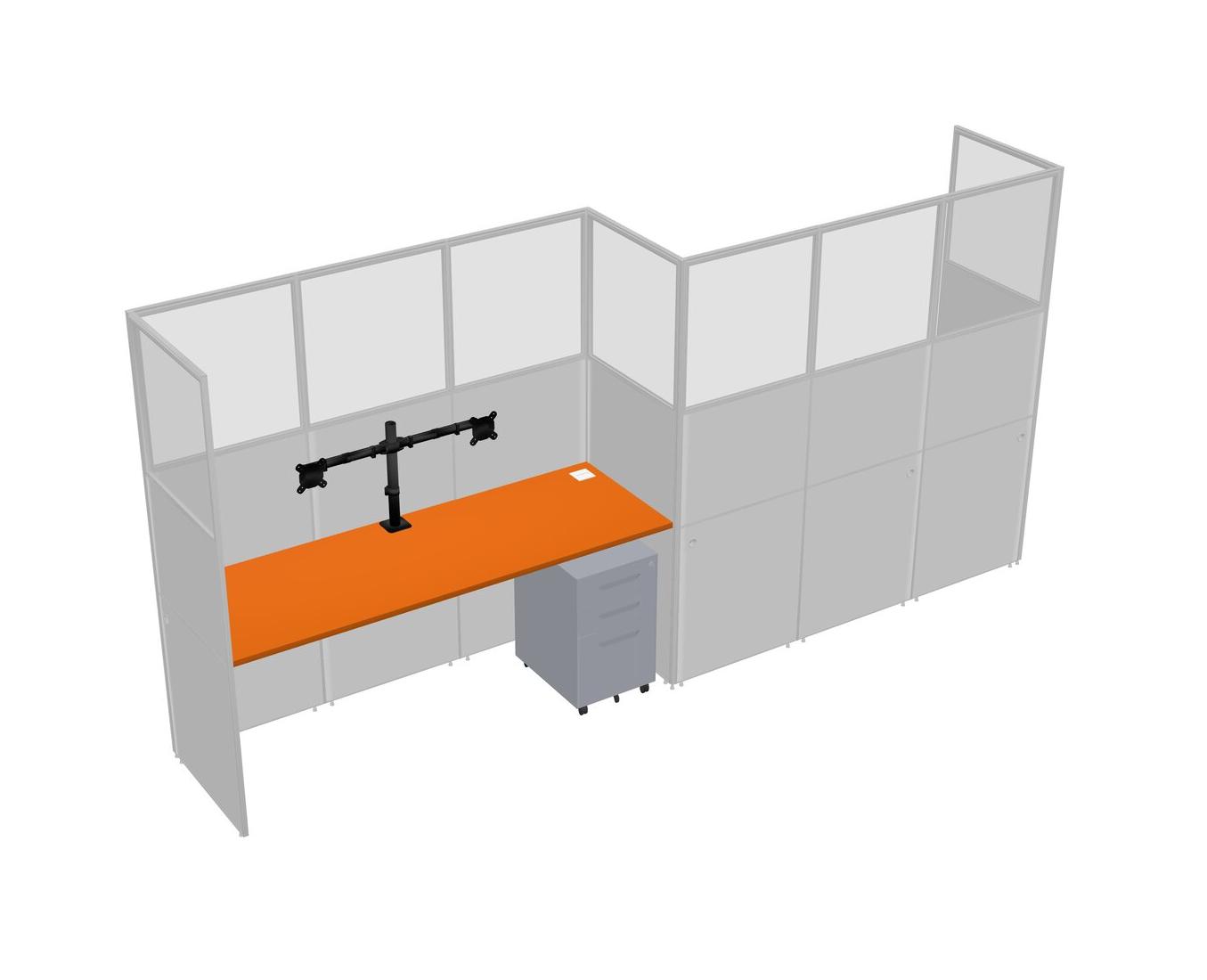 Orange Rectangular Cubicle Workstations For 2 - Zigzag Formation + Grey Metal Mobile Drawers