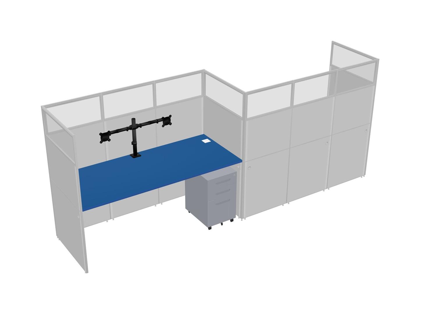 Prism Blue Rectangular Cubicle Workstations For 2 - Zigzag Formation + Grey Metal Mobile Drawers