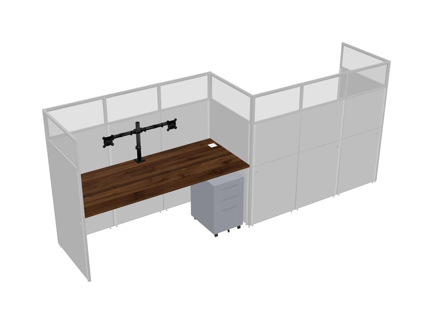 Columbia Walnut Rectangular Cubicle Workstations For 2 - Zigzag Formation + Grey Metal Mobile Drawers