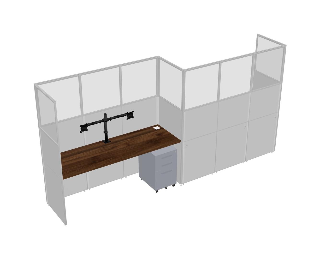 Columbia Walnut Rectangular Cubicle Workstations For 2 - Zigzag Formation + Grey Metal Mobile Drawers