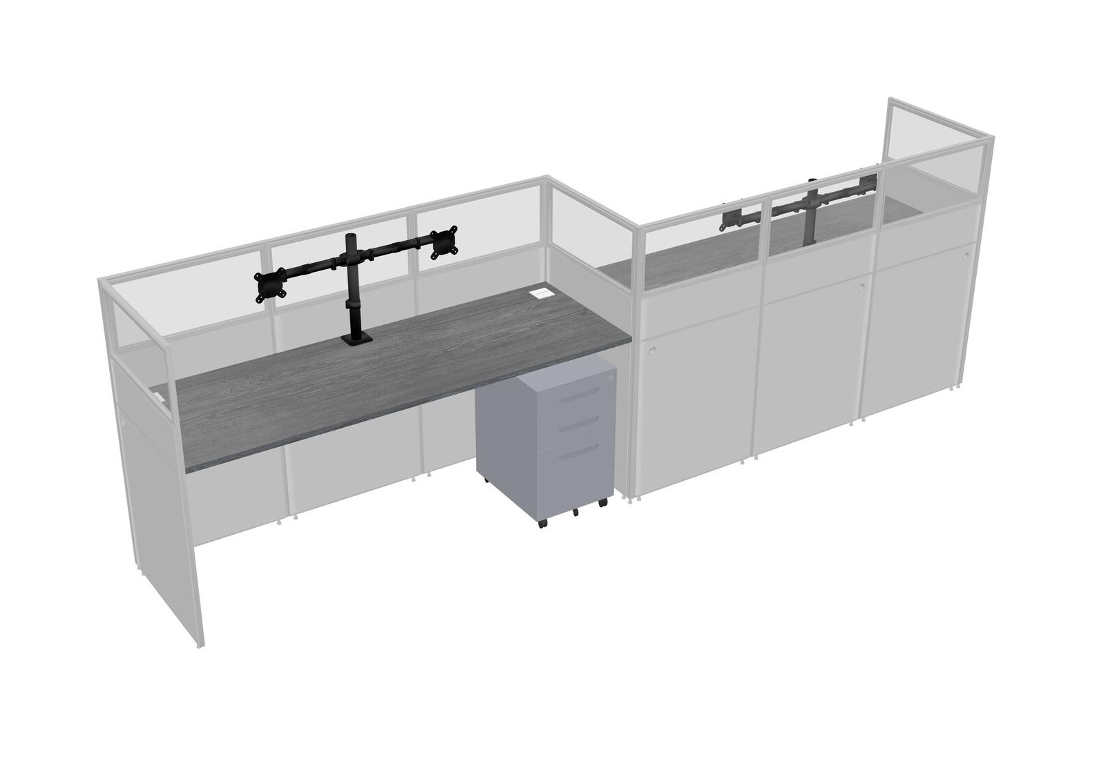 Grey Rectangular Cubicle Workstations For 2 - Zigzag Formation + Grey Metal Mobile Drawers