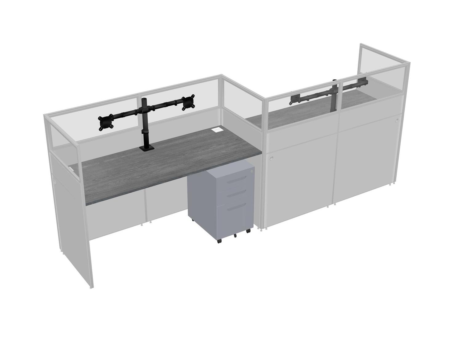 Grey Rectangular Cubicle Workstations For 2 - Zigzag Formation + Grey Metal Mobile Drawers